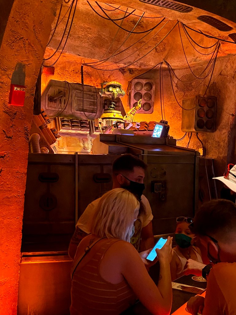 OGAS Cantina at Hollywood studios I had this hard to get reservation for just my husband and I, A bar cum restaurant at the Star wars land. I had heard a lot about the interior of the bar designed to look like a galactic outlet in out space and it truly matched its reviews – straight out of the sets of a Star Wars movie. The drinks were themed to taste and appear this way too. It was a tingling experince. I was particularly impressed with the drink dispensers on ceiling which were actually functional . and we cant miss the most entertaining dj robot who appeared to mix music and spoke in the mike in his funny voice, time and again