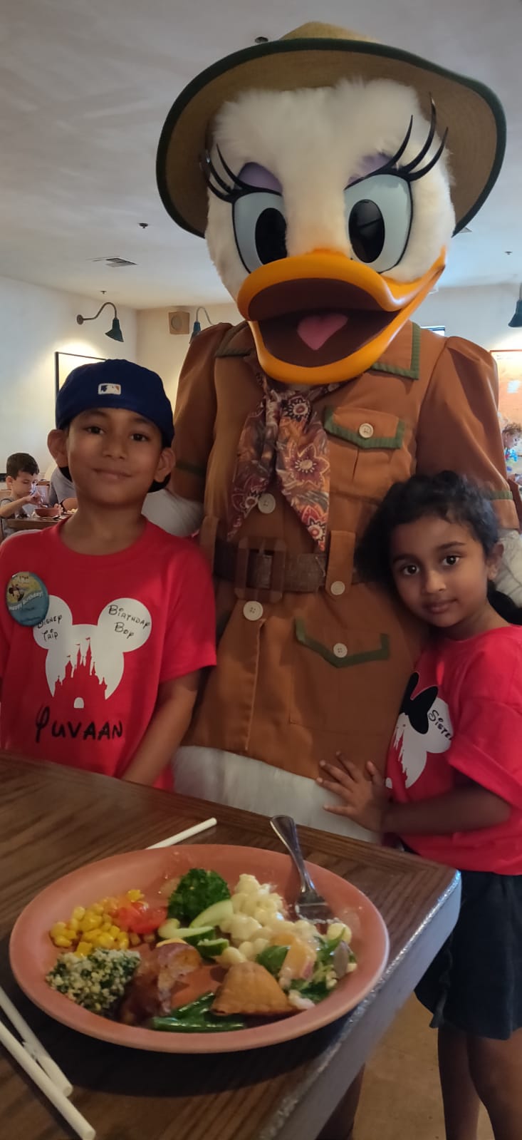 Celebrated my sons Birthday by dining with the main characters at TUSKER HOUSE at Animal kingdom. Not only was it themed to look like a rustic restuarants in Africa but the food was unlimited variety of Asian and African cuisine with inidan and African flavors both. This was the best meal we had on our trip. The characters gave us a good time with enough intereactions and photo moments.